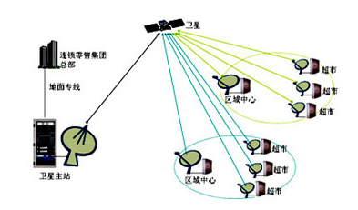 客户总部网络中心以地面专线连接到天广卫星网络中心,各地分支机构建一个双向卫星小站,卫星小站以以太网接口连接分支机构的局域网,通过天广宽带网构成总部与各地分支机构之间的一个虚拟专用网。该虚拟专用网在物理上与其他卫星小站**隔离,保证内部网的安全性。