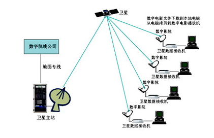 影片传送:数字院线公司、影视公司通过天广宽带卫星网向指定的接收站点供影片。